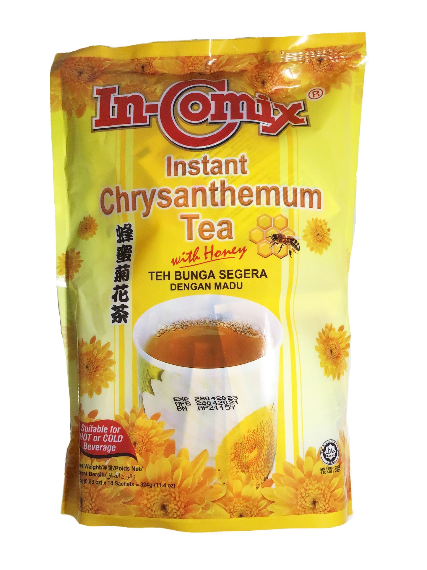 IN-COMIX Instant Chrysanthemum Tea With Honey is crafted from premium natural chrysanthemum and top-quality honey, delicately blended with sugar using advanced technology and modern extraction processes. This tea is designed to alleviate heatiness and promote detoxification